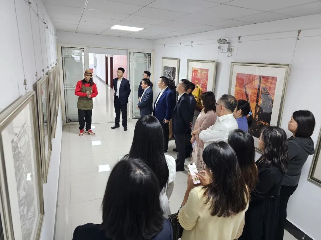 首先,我们一行人怀着崇敬的心情,莅临中国一冶版画研究院进行参观学习。在此次活动中,一冶公司党委副书记王鹏同志深入浅出地向我们讲述了中国一冶工人在不同历史时期创作的版画作品,以及这些作品与中国一冶企业共同成长、进步的历史脉络。随后,版画研究院院长傅树清同志亲自引领我们参观了画廊,使我们得以近距离地感受版画制作的精湛工艺和卓越艺术品质,深刻领略到中国一冶独特的企业文化和积极向上的精神风貌。中国一冶版画研究院的版画作品,呈现出很多有关工程机械吊装元素,这些元素不仅体现了中国一冶在工业建设领域的专业实力,而且通过艺术家的创意和技巧,将冰冷的机械转化为充满艺术感的视觉符号。