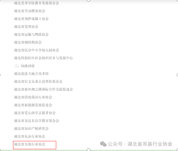 【喜报】湖北省吊装行业协会荣获社会组织评估3A等级
