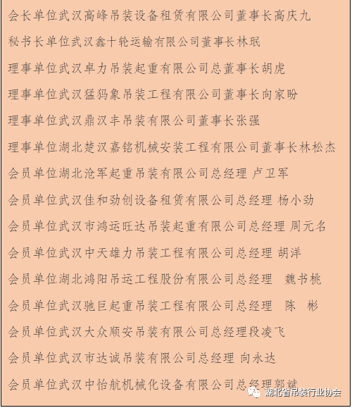 湖北省吊装行业协会金融咨询服务: 17771667709徐庭婷